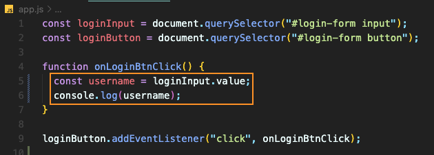 loginInput.value;를 하여 작성되는 text를 저장함.