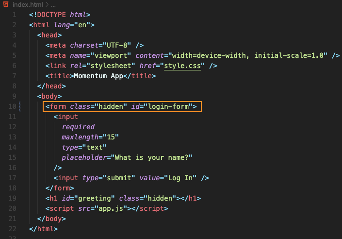 greeting.innerText = `Hello ${username}`;