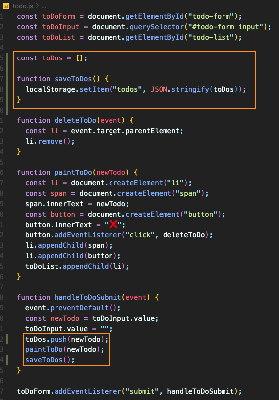 function saveToDos() { 를 하여