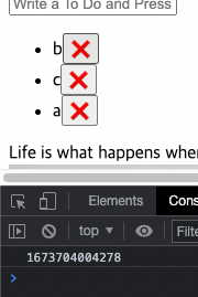 삭제를 하면 삭제한 li의 id가 console에 기록됨.