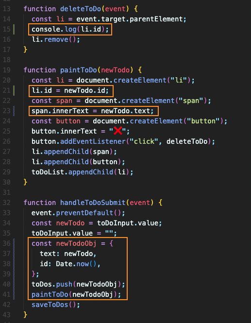 li.id는 newTodo.id인 작성한 ToDo의 id라고 저장함.