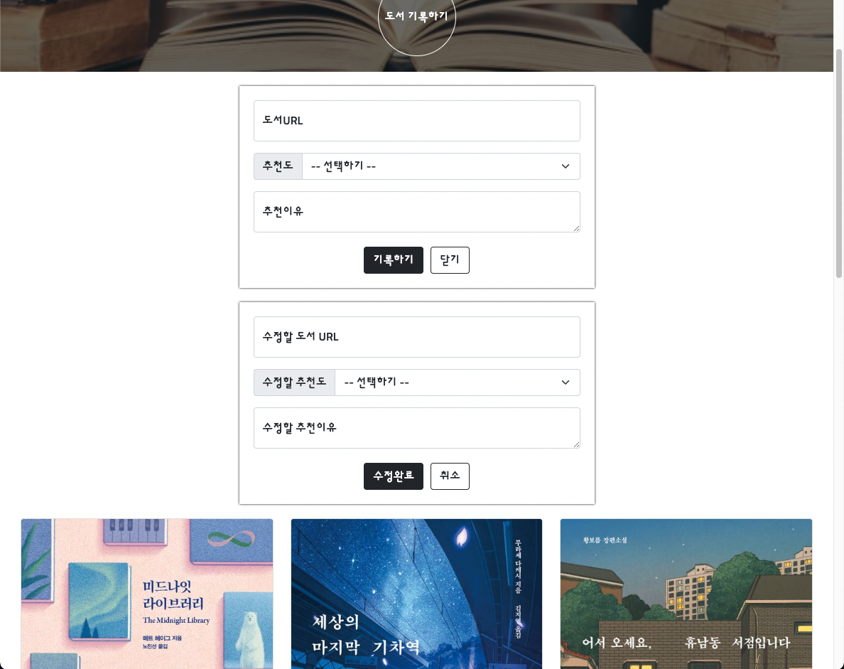 기록하기 버튼을 누르면 기록폼이 나타나고 작성하면 업로드가 되게 하였다.