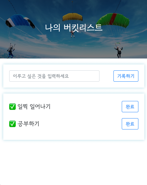 버킷리스트를 작성하고 기록하기 버튼을 누르면 버킷이 생기도록 하였다.