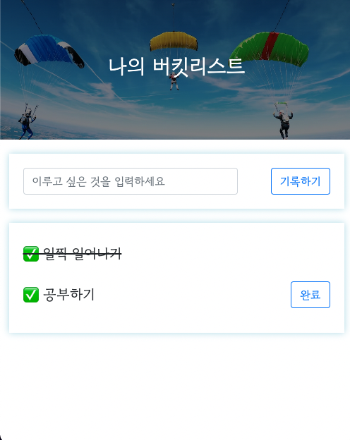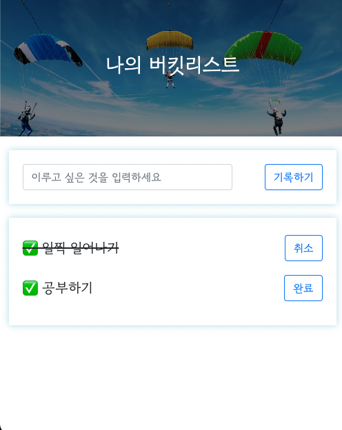 버킷이 완료가 되면 취소선과 함께 취소 버튼이 생기면 어떨까? 라는 생각을 하게 되었다.