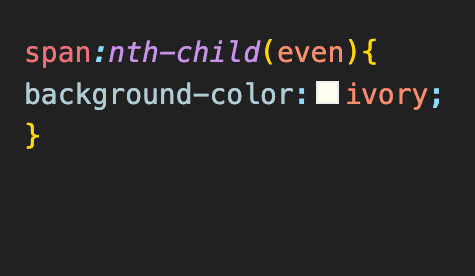 span:nth-child(even)을 하여서 짝수 번째에 있는 박스를 선택하여 변경함.
