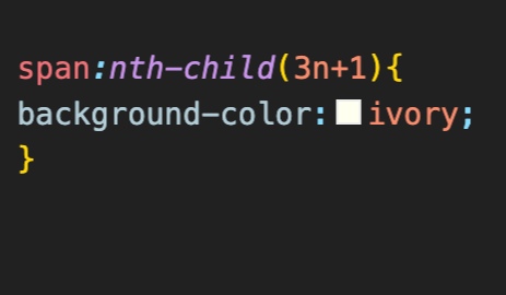 span:nth-child(3n+1)을 하여서 3n+1의 패턴대로 선택하여 변경함.