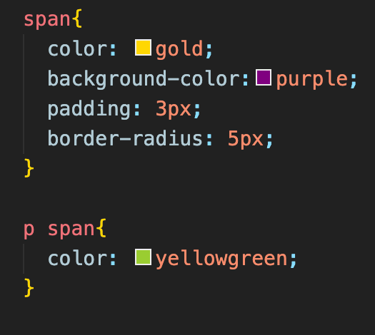 div p span{ 혹은 body p span{ 으로 적어도 됨.