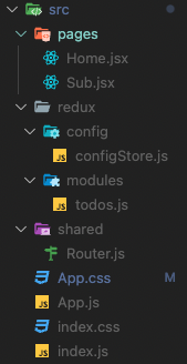 리덕스와 라우터 돔 기본 폴더 구조를 만든다.