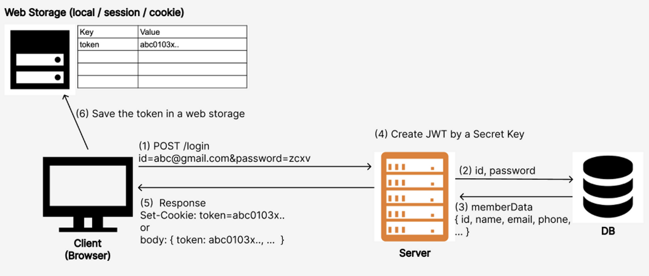 | 인증정보 저장위치 | 서버 | 클라이언트 |