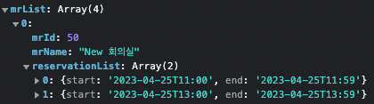 형식은 회의실 예약 데이터에 넘어오는 데이터와 형식을 맞추었다.