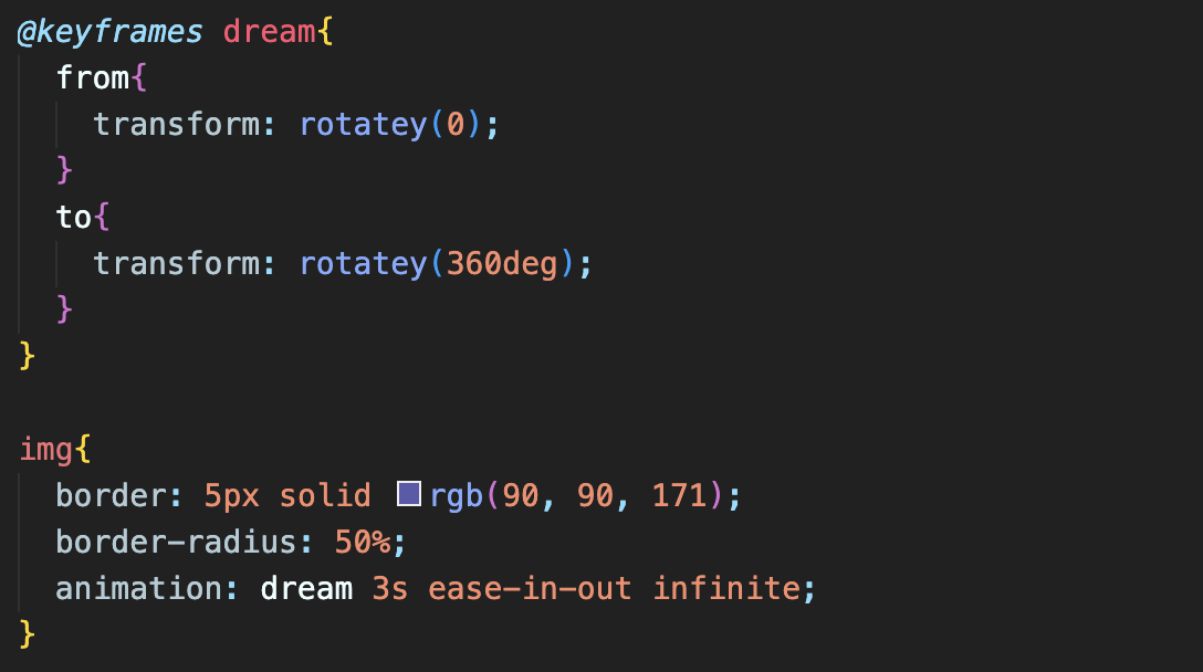 ( 이때 keyframes 뒤에 오는 이름은 마음대로 작성해도 됨.)