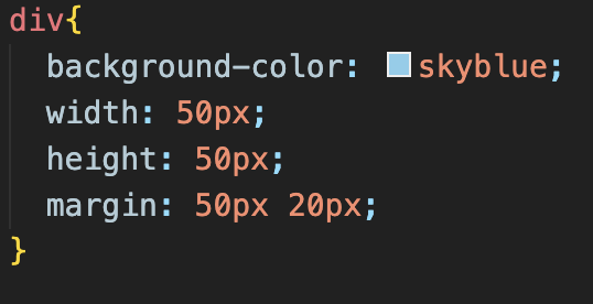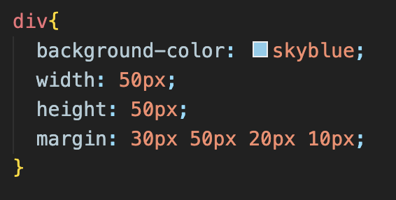 margin: __px __px __px __px; => 나란히 네 개의 값을 작성할 경우 자동으로 앞에서부터 '위, 오른쪽, 아래, 왼쪽' 순으로 적용됨.