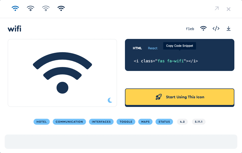 사이트에서 원하는 아이콘을 검색 후에 html 코드를 복사하여