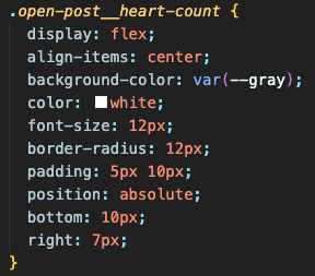 div 박스 안에 이미지와 하트 아이콘, 숫자 span 박스를 만들어줌.