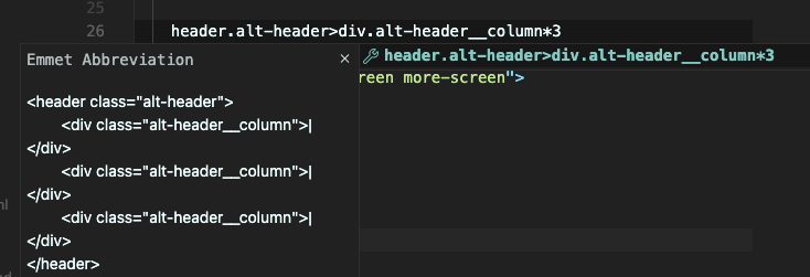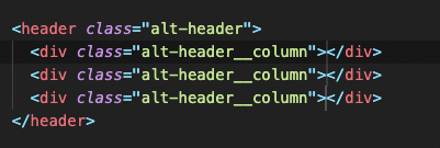 alt-header__column 라는 class를 가진 div 박스를 3개 만듬.