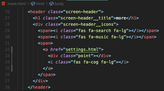 | 35. Settings 화면 만들기 (html,css - settings 화면 2) (0) | 2022.12.05 |