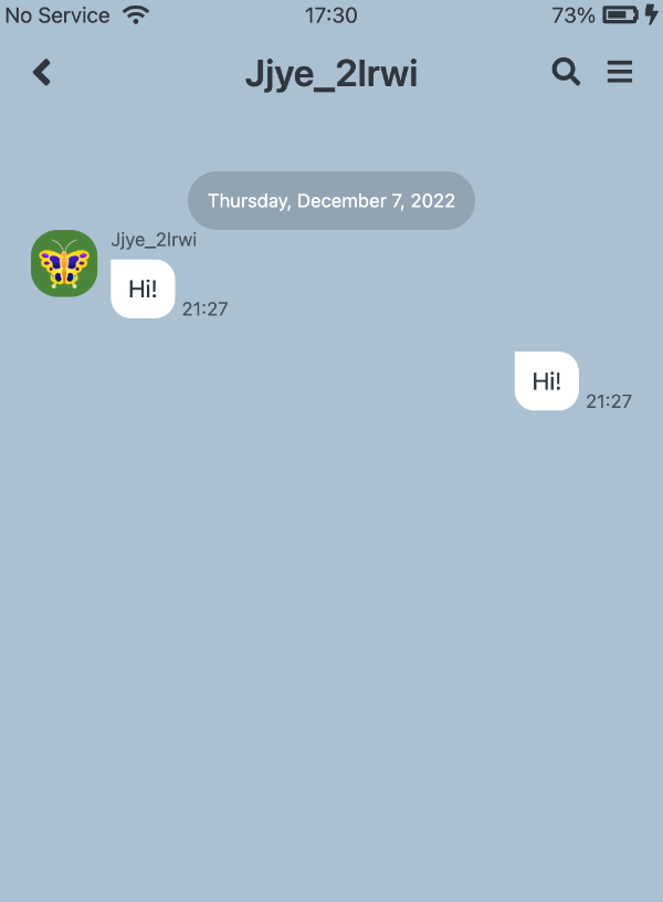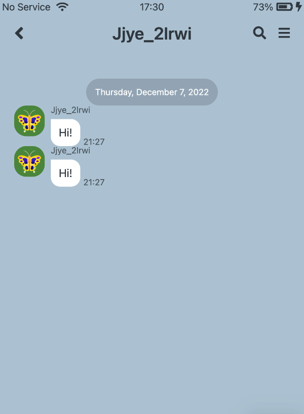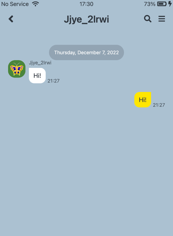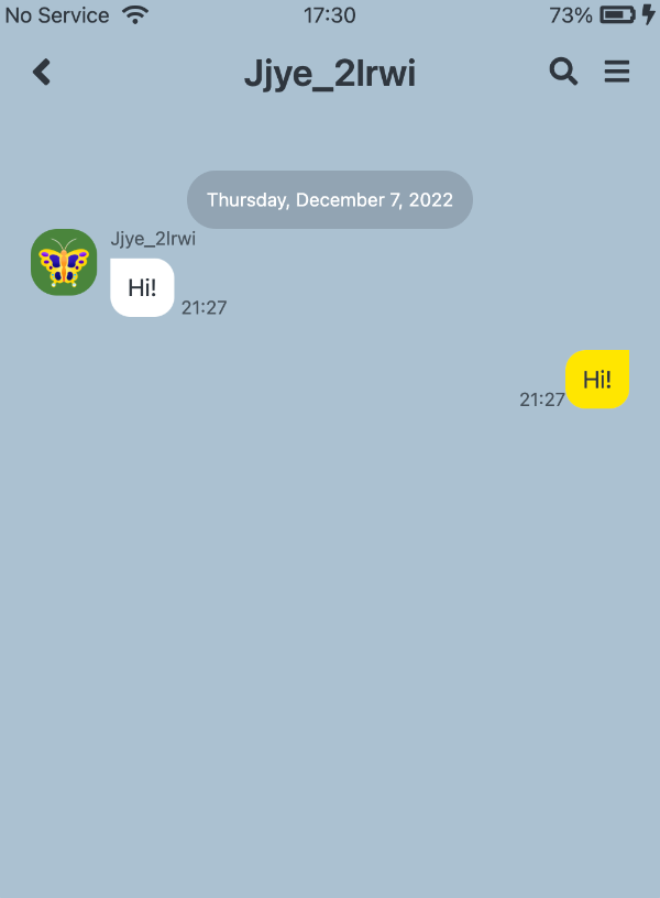 두 개의 메세지 버블이 서로 반대쪽에 위치하게 됨.