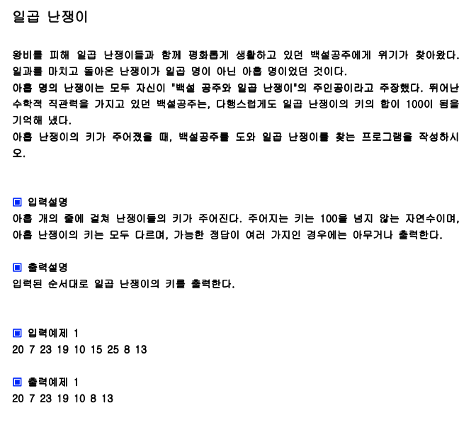 sum인 모든 수를 더한 값에서 answer[i]와 answer[j]를 더한 값을 뺀 값이 100이 되면